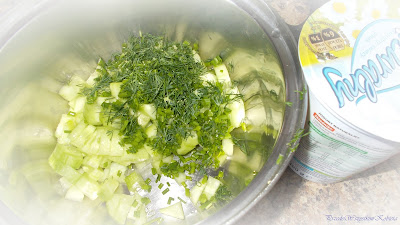 Następnie do ogórka dokładamy nasz Jogurt ja miałam 2 opakowania po 400g, dałam jedno całe i odrobinę zz drugiego…Wymieszałam dokładnie i wstawiłam do lodówki by się porządnie schłodziło.