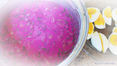Gdy wszystko się schłodzi, zwłaszcza nasz chłodnik mieszamy wszystko razem. JAjka dodajemy na sam koniec.