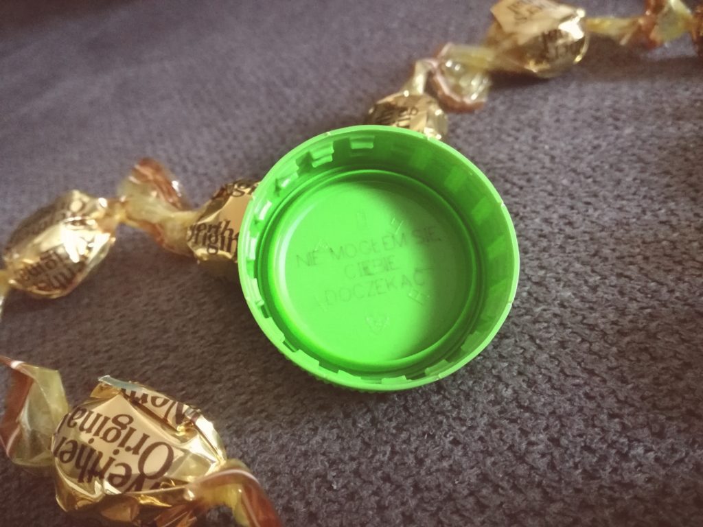 A jak moja rodzinka przywitała mnie po powrocie do domku z nowo narodzonym członkiem rodzinki Nikosiem? Otóż na kanapie było ułożone serducho z cukierków, w środku napis na nakrętce od Tymbarka. Tymbark prawdę ci powie< 3