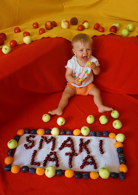 18. To jest Zuzia ma 7 miesięcy Latem zaczęła jeść jabłuszko z biszkopcikami Pyycha ;)Ale dobre Ohhh