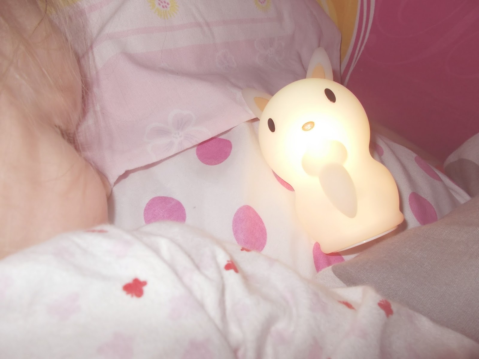 U nas sprawdziła się świetnie. dzieci zachwycone. Lampka którą mogą tulić…No cudo. Był problem tylko jak tu podzielić lampkę na dwójkę dzieci ale daliśmy radę…Po prostu spali z nią na zmianę no i jeden dzień razem. Beż płaczu mamo, chodź bo ciemno, bo się boję. Tymon nie wypuścił jej z rąk przez całą noc. Uprzedzając wasze pytania…Skoro Lampka to świeci, skoro świeci to musi być prą, ale jak prąd to i pewnie się nagrzewa wiec może poparzyć. Otóż nie. Ta jest cały czas zimna. Nie nagrzewa się. Dziecko gdy się przebudzi może samodzielnie delikatnym naciśnięciem na główkę samo włączyć lampkę 😉 Dzieci zatem bardziej wypoczęte bo wyspane bez płaczu w nocy. A jak dzieci to i rodzice 😉 Taka lampka to idealne rozwiązanie. A koszt…hmmm w porównaniu do zwykłych lampek nocnych dla dzieci które mają dawać światło i cieszyć oko dzieci…hmmm… porównywalny…Często zerowy więc wole tą z którą dziecko może mieć bezpośrednią styczność. |Która jest dla niego bezpieczna. Która jest kilkoma produktami na raz tak naprawdę…Lampką, przytulanką, takim nocnym przyjacielem, strażnikiem snu dziecka. Sprawdza się idealnie.