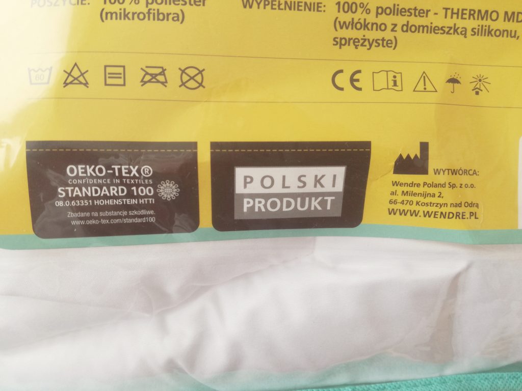 Włókna poliestrowe, wypełnione naturalnymi minerałami, przetwarzając energię oddawaną przez organizm, dają poczucie głębokiego relaksującego ciepła, izolują oraz pozwalają na odparowanie nadmiernej wilgoci. Skuteczność działania innowacyjnego wypełnienia potwierdza certyfikat Niezależnego Instytutu Centexbel (Belgia), sporządzony w dwóch protokołach testowych: test termograficzny, obrazujący efekt termiczny przy kontakcie ze skórą oraz ciepło uzyskane przez odbicie fal podczerwonych. Certyfikat potwierdza, że kołdra Wendre Szybko Ciepło ogrzewa ciało do 30 proc. szybciej niż standardowe kołdry. Poszycie wykonano z przyjemnej w dotyku mikrofibry, a brzegi obszyto czerwoną lamówką. Kołdry można prać w temperaturze 60 stopni Celsjusza, nie stracą one sprężystości oraz właściwości regulujących temperaturę.